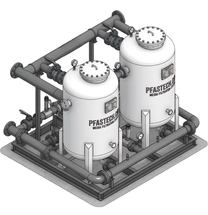 Advanced blended media technology targeting complex PFAS profiles including cyclic compounds and emerging variants. Combines multiple removal mechanisms for comprehensive treatment across the full PFAS spectrum.